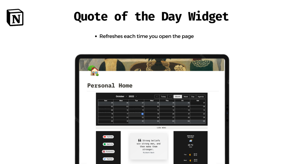 This will not only look minimal but also add a touch of difference to them. Next, there is also ‘Quote of the day’ widget. Get a new, inspiring quote each time you open the dashboard.